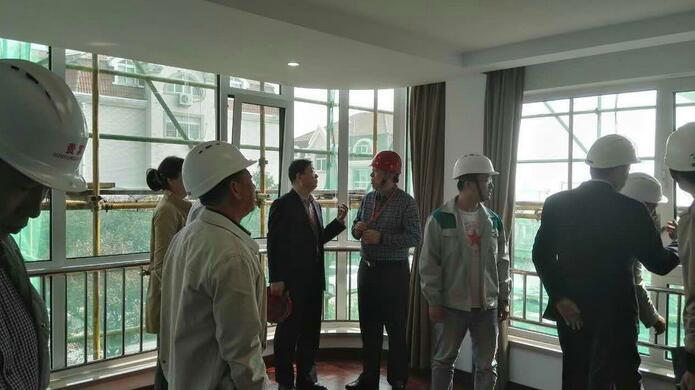 10月13日,原青岛市副市长,现青岛市企业联合会、企业家协会会长吴经建等领导一行莅临由太阳成集团tyc9728承建的东海路8号2栋装修改造工程进行调研,并对样板间进行验收。