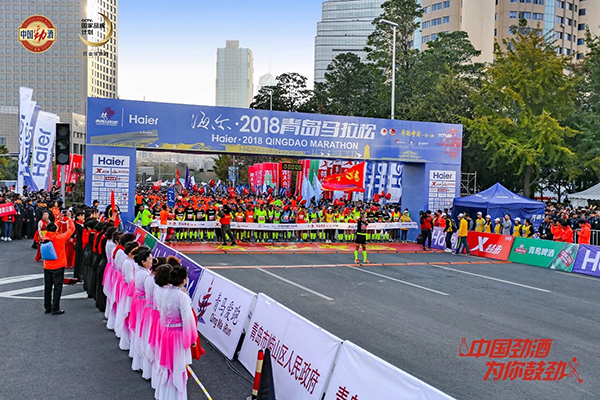 随着一声枪响,龙门处全马选手冲线而跑,这场由CCTV-5直播的赛事,正式拉开帷幕!
