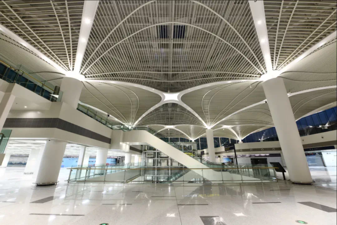 青岛新机场综合交通换乘中心作为全国首个集高铁、地铁于一体的零换乘综合交通中心,青岛新机场综合交通中心(GTC)最大特色在于与高铁、地铁机场站结合建设,实现了航空、轨道、高铁等交通方式的零换乘,形成空陆一体的交通体系。
