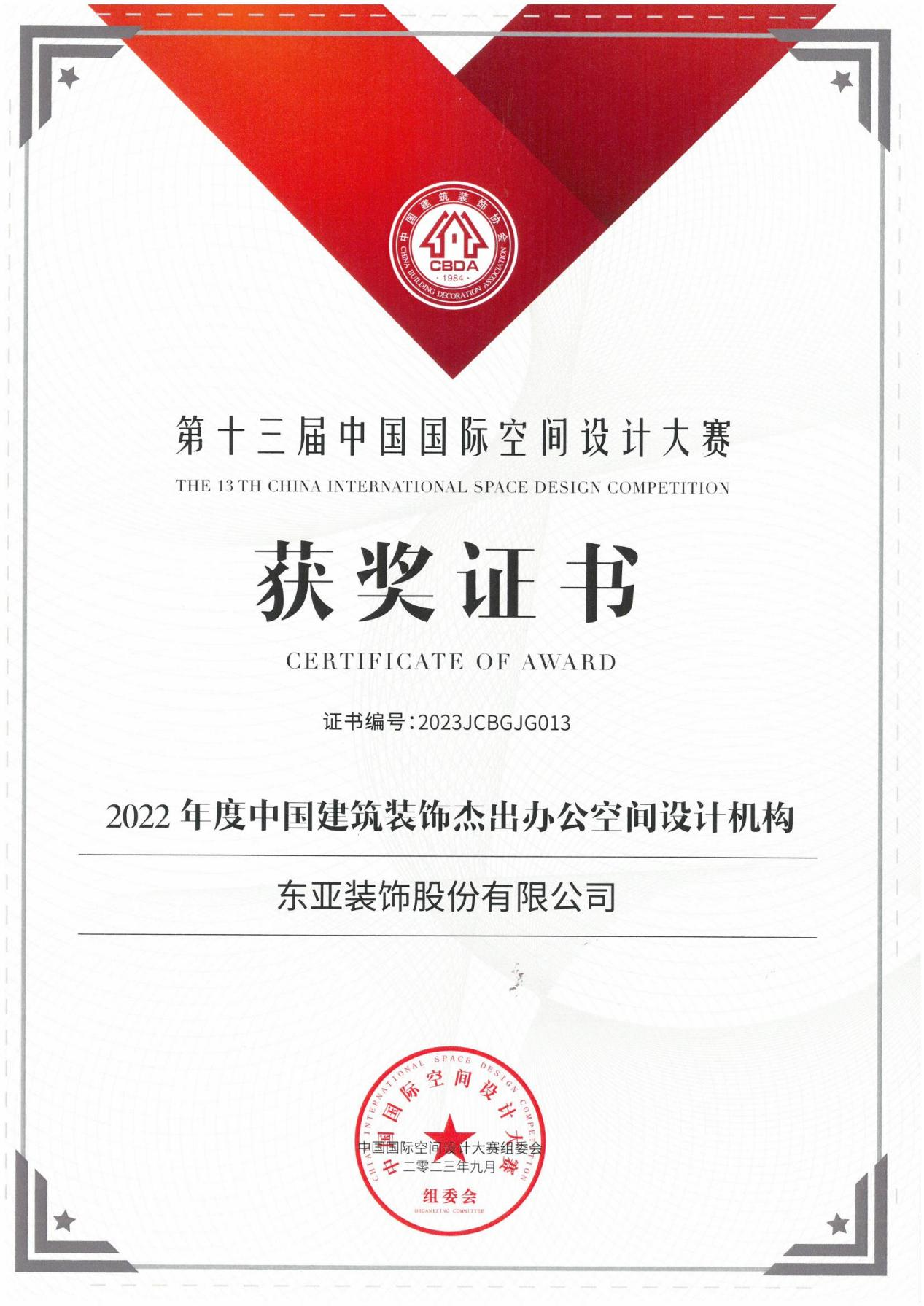 2022 年度中国建筑装饰杰出办公空间设计机构