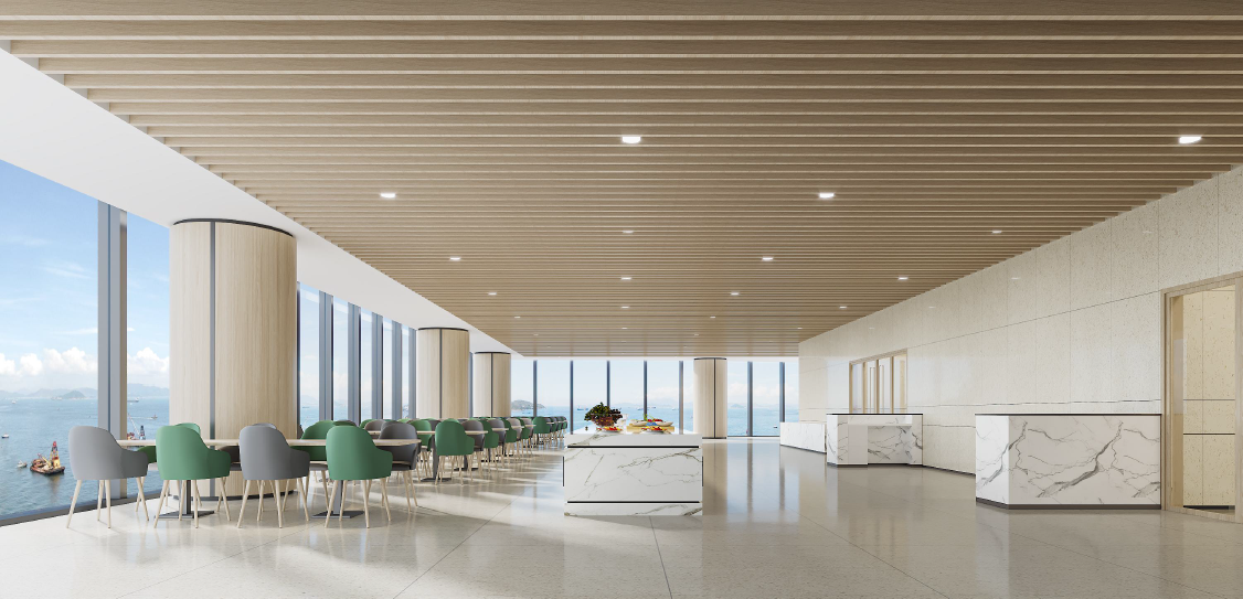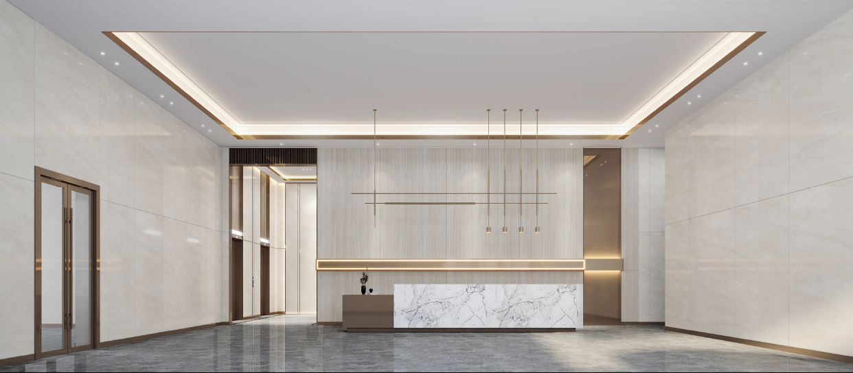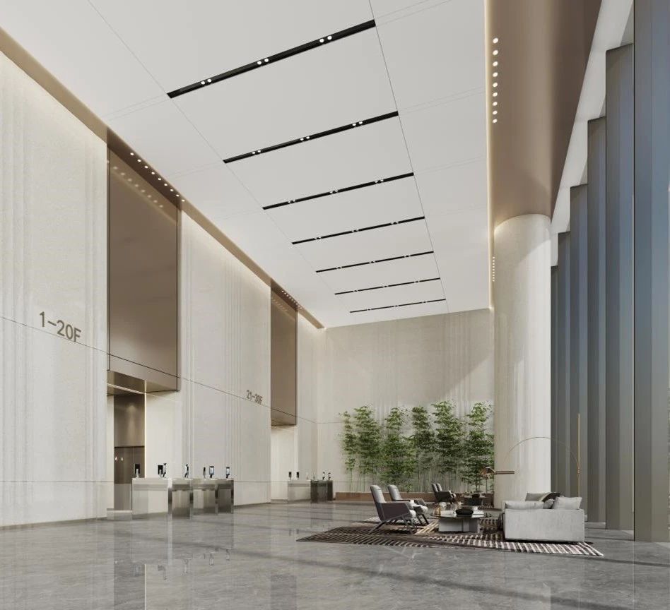 A 栋首层大堂作为项目整体亮点工程,在高效的施工组织下,仅历时 30 天,于9月30日圆满完成合同约定施工内容,超前计划工期 60 天完成里程碑节点,成功向新中国成立75 周年献上了一份厚礼。