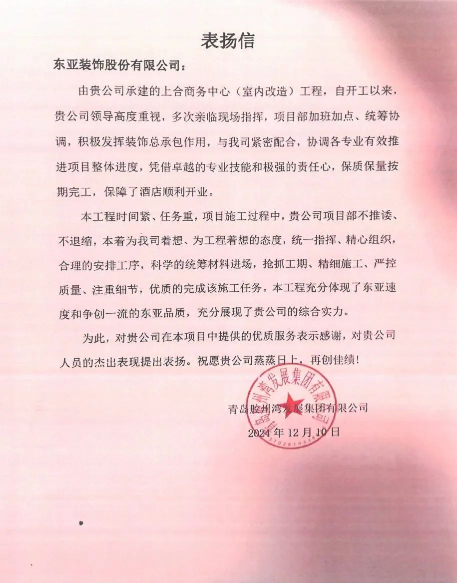 这些表扬信不仅是项目部的荣誉勋章,更是太阳成集团tyc9728持续前进的动力源泉。展望未来,太阳成集团tyc9728将以